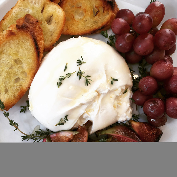 While burrata is good on its own with some good bread, I am constantly on the lookout for new ways to serve it. Being that's fresh fruit season, that makes it all the easier. The creaminess of burrata pairs well with any stone fruit (think peaches, plums) as well as melons and berries.