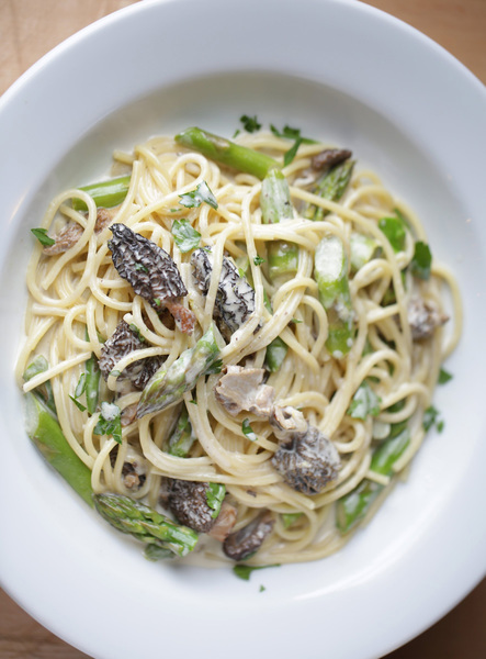 Today's recipe is one of my favorites that I make every year. It pairs another spring favorite, earthy morels, with asparagus. If you can't get your hands on fresh morels, you can use dried morels and reconstitute them. Their flavor is hearty, so a little goes a long way.