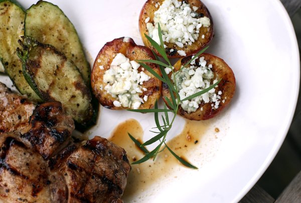 Try today's recipe from our archives that pairs pork chops with grilled peaches topped with feta cheese.