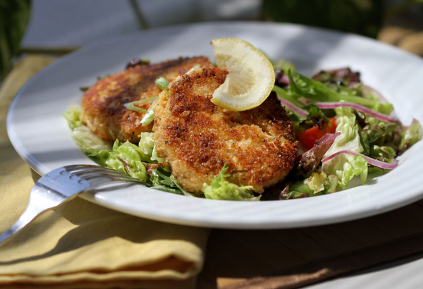 Serving the salmon cakes on a bed of mixed greens tossed with homemade vinaigrette is my preference _ especially in the summer.