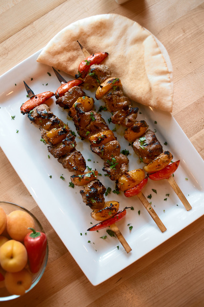 These kebabs have tasty morsels of marinated lamb nestled between pieces of fruit and vegetables. I came up with this recipe a few years ago, and it has become a regular on my summer grilling menu.