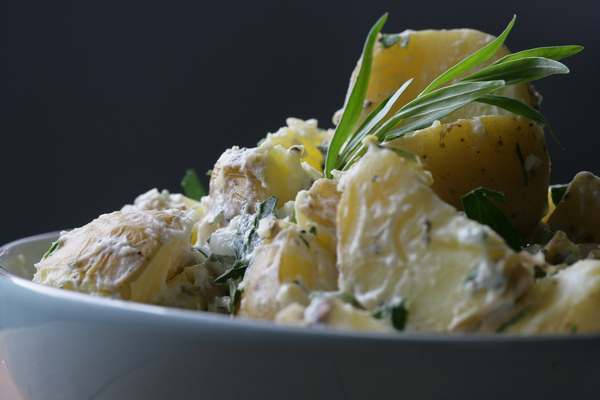 There are plenty varieties of potatoes, but some of the best for potato salad are the thinner skin waxy varieties: Yukon golds, new potatoes and red skin. Baking potatoes are a little too mealy for potato salad.