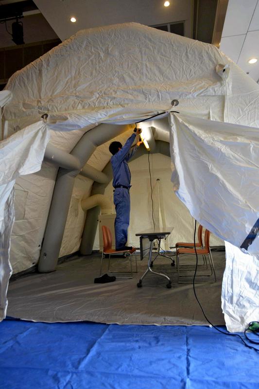 Under such circumstances, the ward government set up the medical tent, in which the air pressure is lowered to prevent the virus from spreading outside, in the public facility. About 40 people are expected to be examined daily.