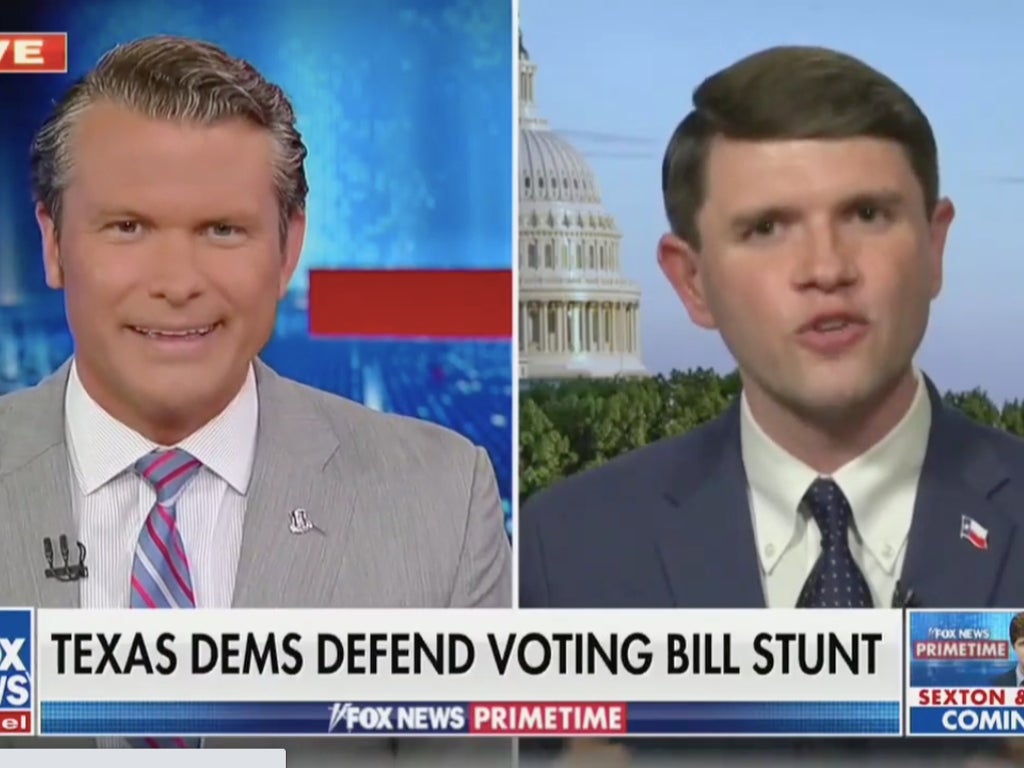 A Texas Democrat has clashed with Fox News’ Pete Hegseth in an explosive exchange, which resulted in the TV host being asked repeatedly to admit that Trump lost the 2020 election – something he did not do.