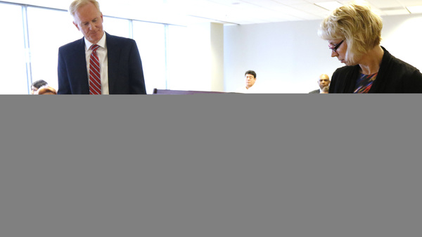 As Mark passed his wife, each extended an arm toward the other and they touched hands.