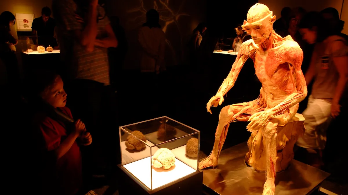 Real Bodies is a touring human-physiology exhibition that displays real donated bodies preserved through plastination, a process that replaces bodily fluids with polymers to create long-lasting anatomical specimens. The show presents full-body figures and dissected organs in lifelike poses to illustrate muscles, nerves, circulation, and other biological systems. It is marketed as an educational science installation intended to give visitors a detailed look at human anatomy that cannot be replicated with models or diagrams.