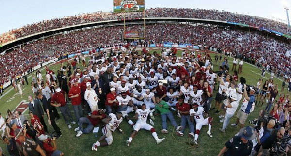The Sooners had no problems with the 91-degree heat, though. Mayfield came out guns blazing. He connected with Jeff Badet for a 54-yard touchdown pass on OU's first possession. A crucial 15-yard completion to Andrews led to a field goal. Rodney Anderson scampered up the middle for a 15-yard run, and OU had a dominating 17-0 lead.