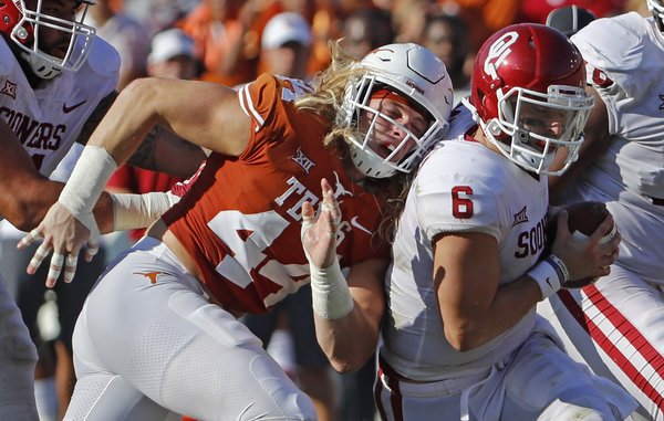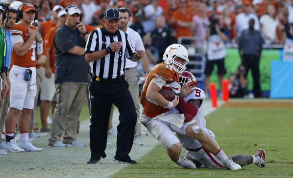 "This is a kid who has grown up hating Oklahoma since he was 5 years old," Texas coach Tom Herman said on the pre-game radio show.