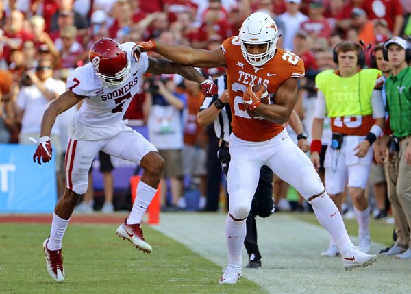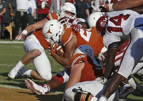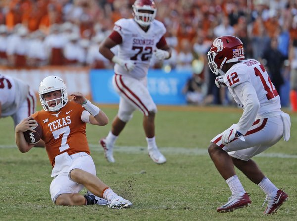 OU went three-and-out twice in the fourth quarter, and Texas took over at its own 29. On third-and-10, Ehlinger found Hemphill-Mapps for a 22-yard gain. Then Cade Brewer took a swing pass 21 yards to the OU 8. Ehlinger scampered around the right end and punched it in, giving Texas a 24-23 lead.