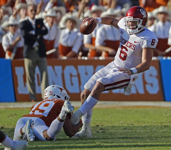 OU's Baker Mayfield threw for 302 yards. He slipped away from Malik Jefferson and Charles Omenihu on would-be sacks. And Mayfield found Mark Andrews for what became the game-clinching 59-yard score.
