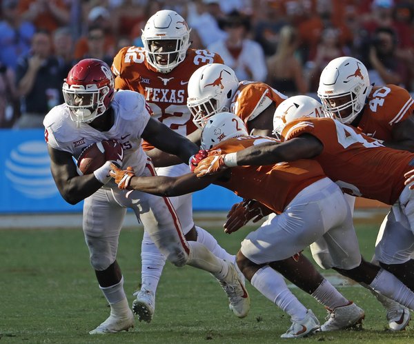 The Longhorns, who had just 19 total yards in the first quarter, finally found traction in the second quarter. But a drive to the OU 43 stalled out when Ehlinger couldn't connect with Collin Johnson on fourth-and-8. Two possessions later, the Sooners had a 20-0 lead that felt much, much bigger.