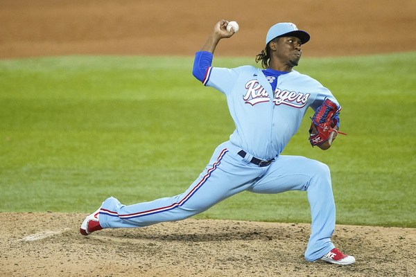 Texas Rangers pitcher Rafael Montero delivers during the ninth inning against the Houston Astros on Sunday, September 27, 2020 at Globe Life Field in Arlington, Texas. (Smiley N. Pool/The Dallas Morning News/TNS)