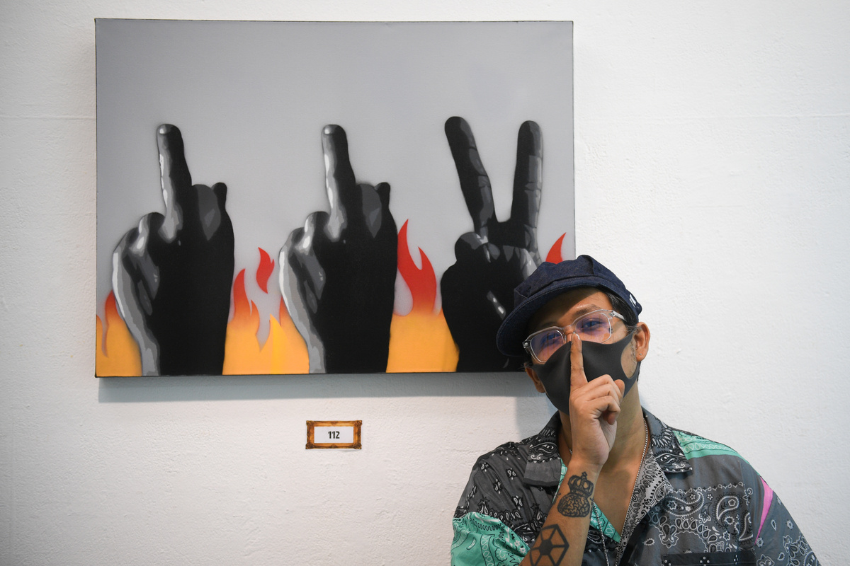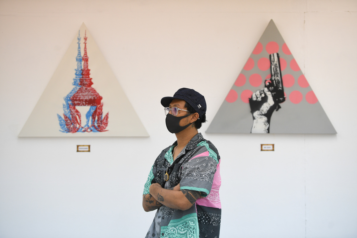 The artist, who doesn't disclose his real name or age, launched the exhibition last week in a gallery above a Bangkok bar, on a day when four high-profile activists were put in pre-trial detention over their taboo-breaking calls to reform Thailand's monarchy.