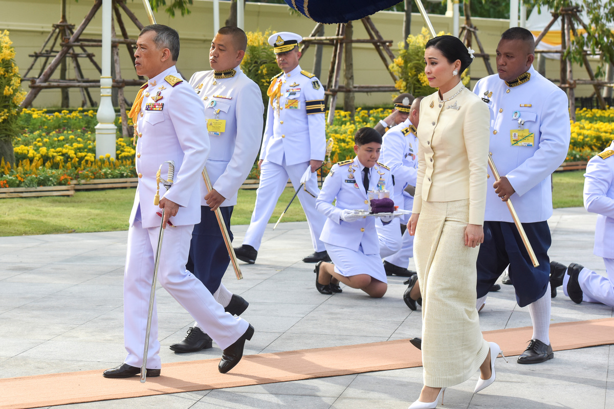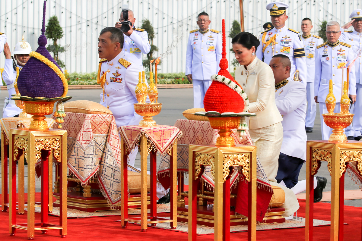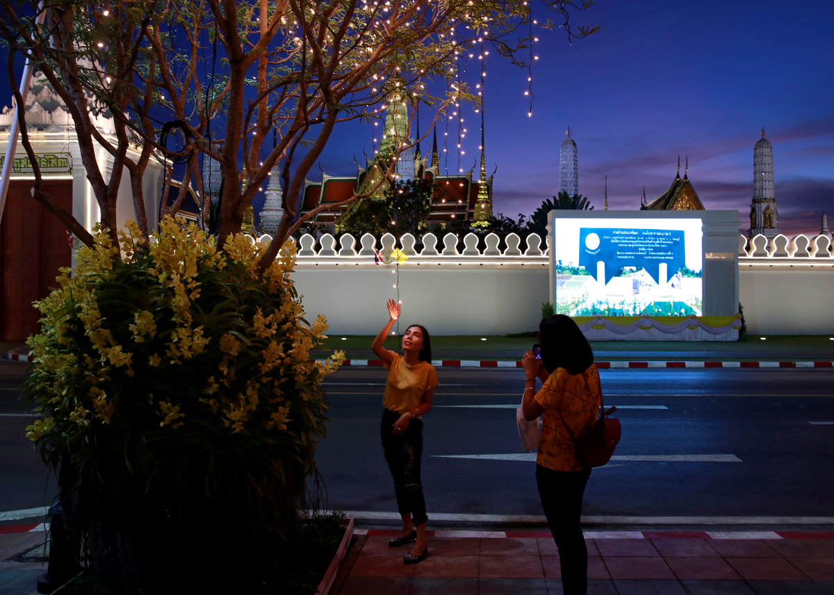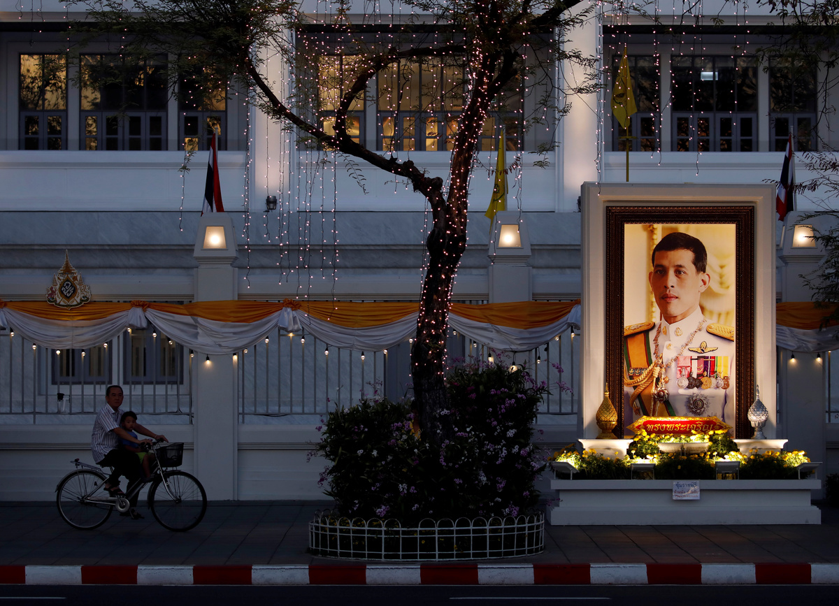 Thailand's King Maha Vajiralongkorn and Queen Suthida leave after paying their respect at the statue of King Rama V at the Royal Plaza in Bangkok, Thailand, May 2, 2019. REUTERS/StringerThailand's King Maha Vajiralongkorn and Queen Suthida arrive before paying their respect at the statue of King Rama I in Bangkok, Thailand, May 2, 2019. REUTERS/Panumas SanguanwongThailand's King Maha Vajiralongkorn and Queen Suthida leave after paying their respect at the statue of King Rama V at the Royal Plaza in Bangkok, Thailand, May 2, 2019. Pool via Reuters.Thailand's King Maha Vajiralongkorn and Queen Suthida pay their respect at the statue of King Rama V at the Royal Plaza in Bangkok, Thailand, May 2, 2019. Pool via ReutersA man wearing a yellow shirt holds up a picture of Thailand's King Maha Vajiralongkorn as he waits for his arrival near the statue of King Rama I in Bangkok, Thailand, May 2, 2019. REUTERS/Athit PerawongmethaA man along with a boy rides a bicycle near the portrait of King Maha Vajiralongkorn near the Grand Palace, ahead of the King's coronation, in Bangkok, Thailand May 2, 2019. REUTERS/Navesh ChitrakarLights illuminate the Grand Palace during sunset, ahead of King Maha Vajiralongkorn's coronation, in Bangkok, Thailand May 2, 2019. REUTERS/Navesh ChitrakarA woman poses for a picture outside the Grand Palace, ahead of King Maha Vajiralongkorn's coronation, in Bangkok, Thailand May 2, 2019. REUTERS/Navesh ChitrakarA police officer stands guard near the Grand Palace, ahead of King Maha Vajiralongkorn's coronation, in Bangkok, Thailand May 2, 2019. REUTERS/Navesh Chitrakar