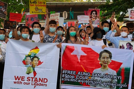 Their action was linked to the informal Milk Tea Alliance of pro-democracy activists from Hong Kong, Taiwan, Thailand and Myanmar, which called for efforts Sunday online and in real life in support of the protests in Myanmar.