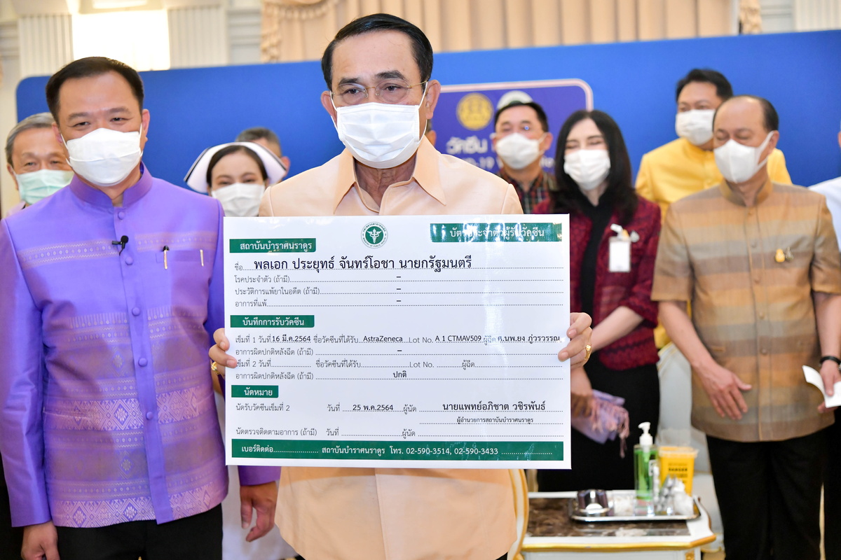Prayuth and his cabinet were injected with some of the 117,300 doses of imported AstraZeneca vaccine Thailand received for emergency use earlier this month.