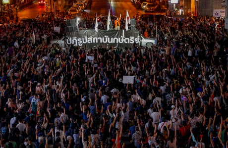 The rally in the middle of a Bangkok shopping district was called by the United Front of Thammasat and Demonstration, a faction of a broader protest movement that started last year and has three core demands: the resignation of Prime Minister Prayuth Chan-ocha and his government, for the constitution to be amended to make it more democratic and the monarchy to be reformed to make it more accountable.