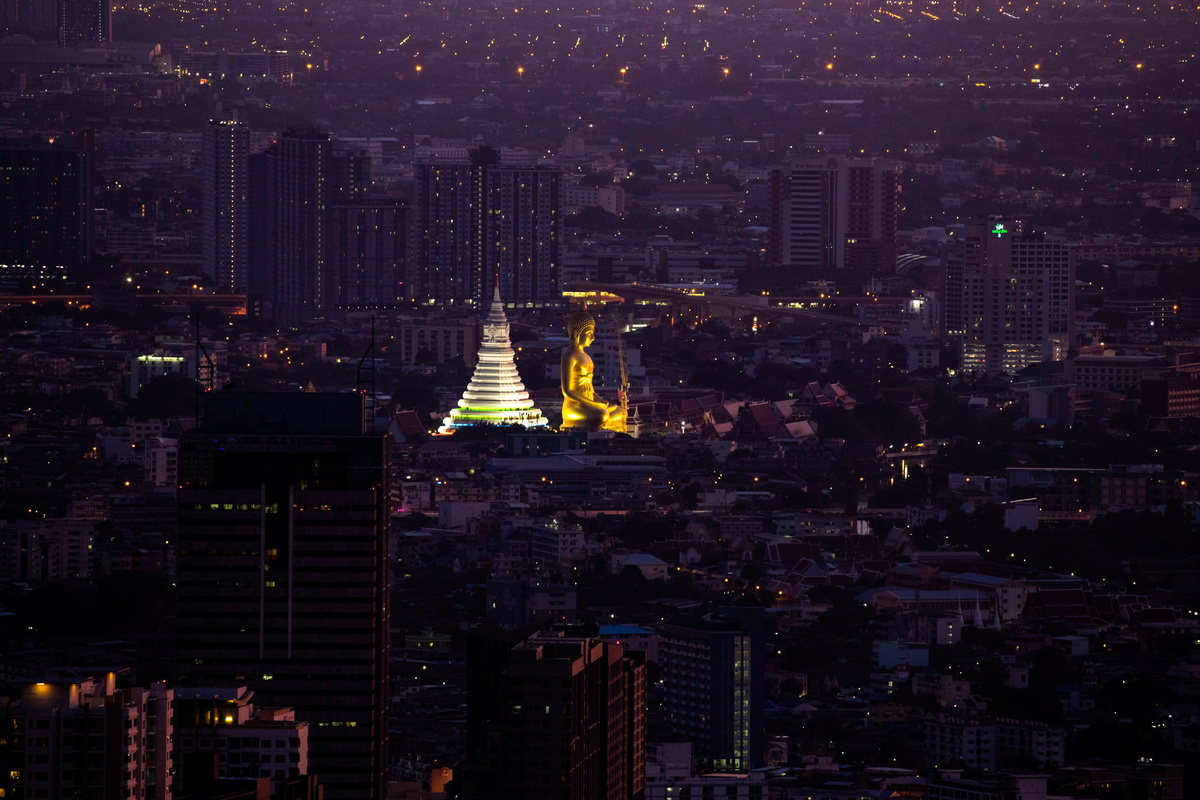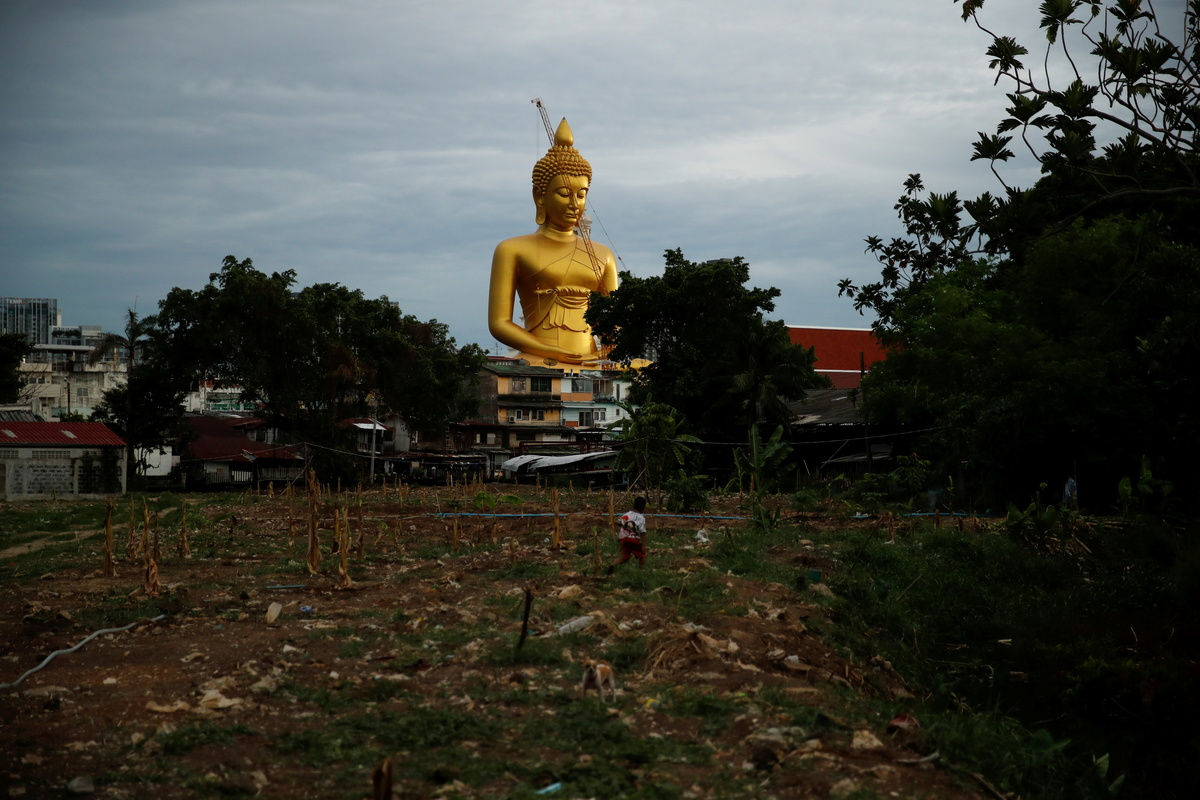 A Thai temple building a 69-metre-tall (230 ft) Buddha statue that will be visible across Bangkok said construction was nearly complete but its opening may be pushed back to 2022 due to delays caused by the coronavirus pandemic.