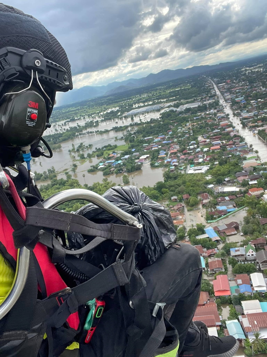 A paramotoring enthusiast in northern Thailand has taken to the skies to help deliver urgently need supplies to people cut off by floods.