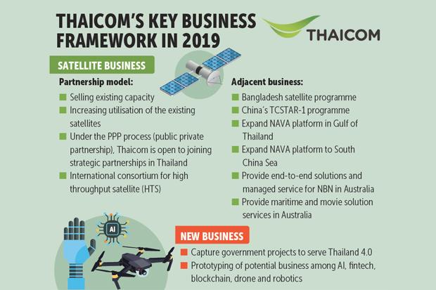 Thaicom last week reported its 2018 performance. Satellite revenue was 5.85 billion baht, down 10% compared with 6.4 billion in 2017, due to the slowdown of industry and intense competition.