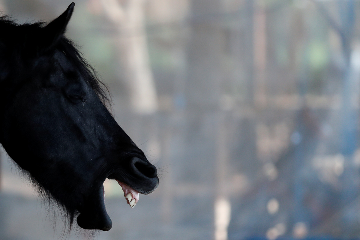 A horse is seen in an stable amid an outbreak of the African Horse Sickness (AHS), at Farm Mor Por stable in Khao Yai National Park, Nakhon Ratchasima, Thailand April 20, 2020. REUTERS/Jorge Silva
