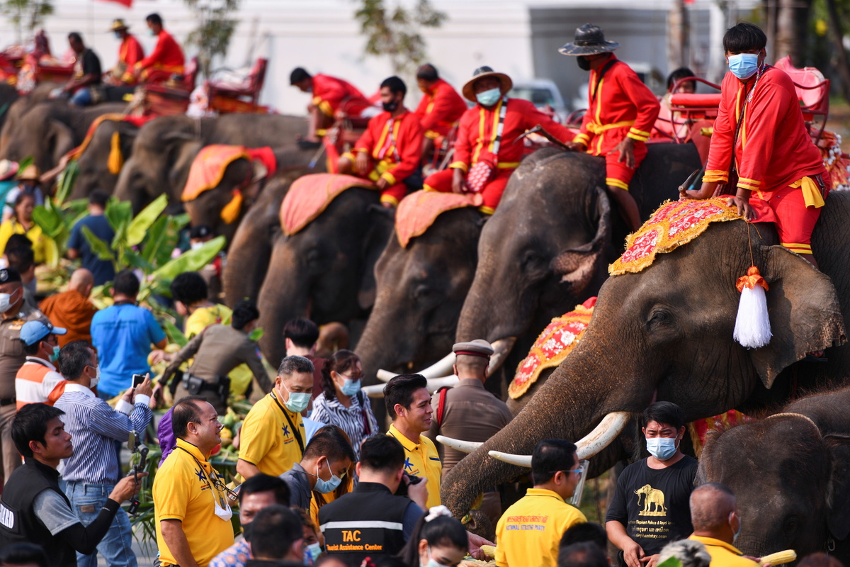 Thailand held a fruit banquet for dozens of elephants in the ancient capital Ayutthaya on Saturday, continuing an annual event which has been a big draw for foreign tourists in the hope they will return soon and revive the key tourism industry.