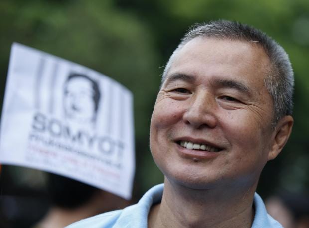 Mr Somyot, who was the editor of a political magazine, Voice of Taksin, had been imprisoned in 2013 for 10 years under Thailand’s lese-majeste law, but the Supreme Court reduced his sentence in 2017.