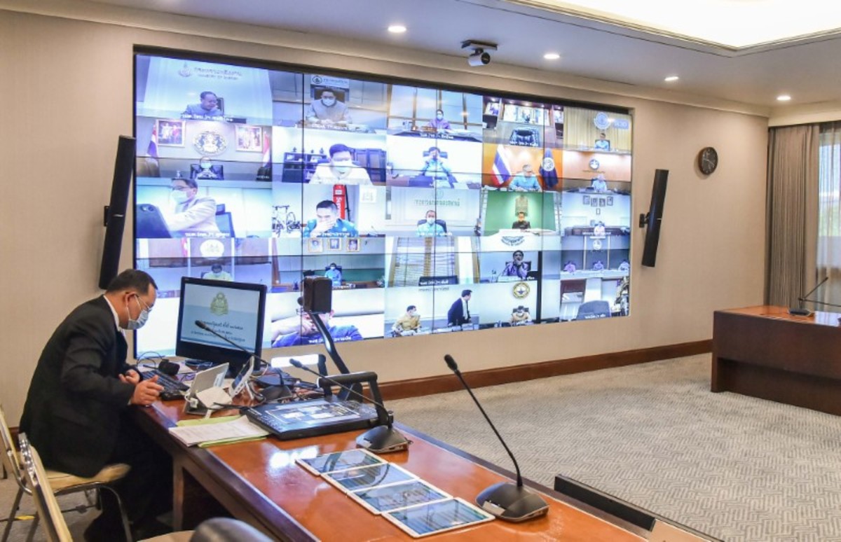 Thailand's Prime Minister Prayuth Chan-ocha wears a protective face mask due to the coronavirus disease (COVID-19) outbreak during a teleconference for a weekly cabinet meeting with his ministers at the Government House in Bangkok, Thailand, March 24, 2020. Thailand Government House/Handout via REUTERS