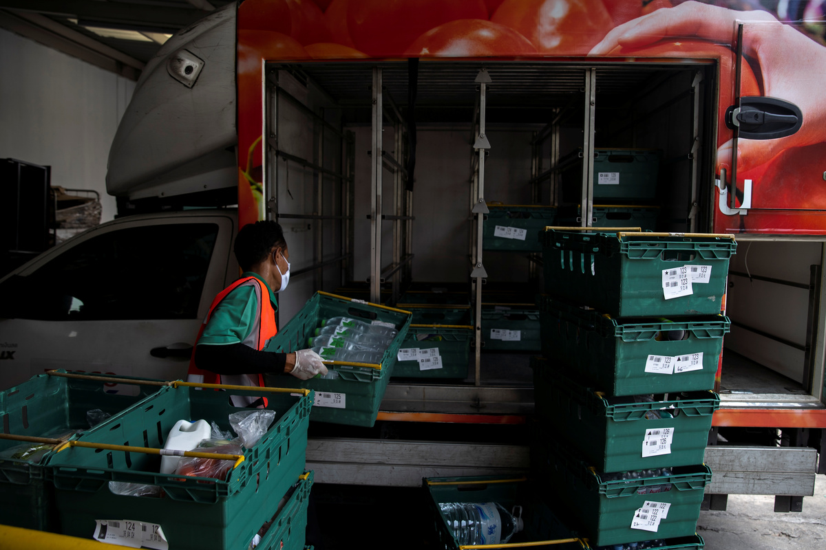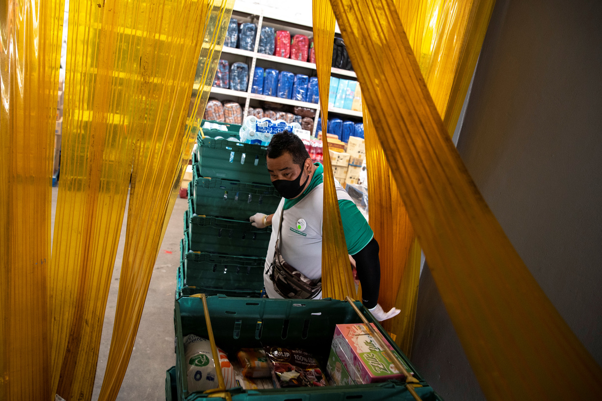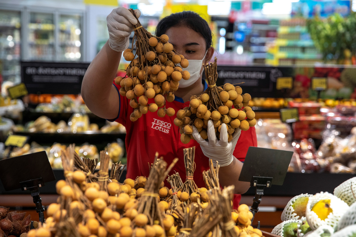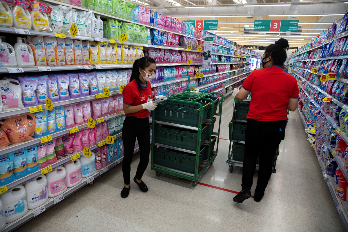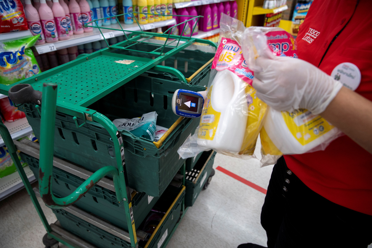 An employee of Tesco Lotus shop online prepares customers orders during the coronavirus disease (COVID-19) outbreak, at a Tesco Lotus supermarket in Bangkok, Thailand, March 31, 2020. REUTERS/Athit Perawongmetha