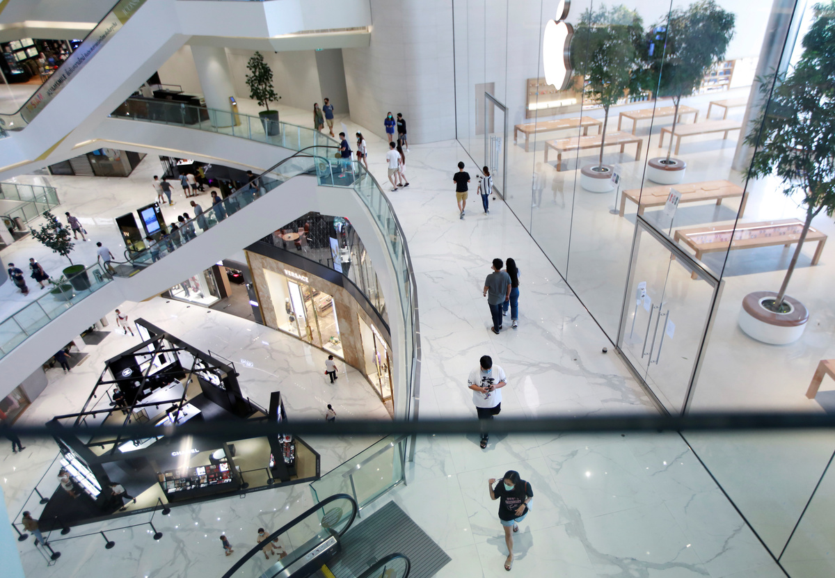 Queues formed on Sunday at the reopening of Thailand's malls, where some operators using touch-less elevators and deploying robots to take customers' temperatures.