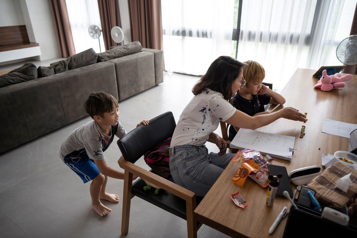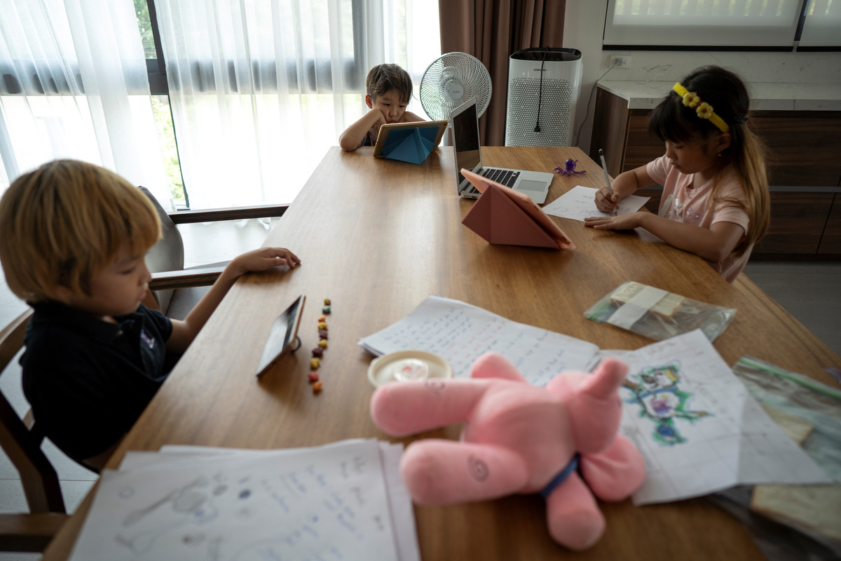 Nongnuch 43, sits next to her nephew Suntis Suntudkan, 4, who is studying at home during the spread of the coronavirus disease (COVID-19), as her son Pongchana Kumlakasing, 7, plays around, at their house in Bangkok, Thailand, March 30, 2020. REUTERS/Athit PerawongmethaPongchana, Nevada Kumlakasing and Suntis Suntudkan study at home during the spread of the coronavirus disease (COVID-19) in Bangkok, Thailand, March 30, 2020. REUTERS/Athit PerawongmethaPongchana, Nevada Kumlakasing and Suntis Suntudkan study at home during the spread of the coronavirus disease (COVID-19) in Bangkok, Thailand, March 30, 2020. REUTERS/Athit PerawongmethaPongchana Kumlakasing, 7, studies at home during the spread of the coronavirus disease (COVID-19) in Bangkok, Thailand, March 30, 2020. REUTERS/Athit PerawongmethaNevada Kumlakasing, 10, studies at home during the spread of the coronavirus disease (COVID-19) in Bangkok, Thailand, March 30, 2020. REUTERS/Athit PerawongmethaNongnuch, 42, leads her son Pongchana Kamlakasing to study at home during the spread of the coronavirus disease (COVID-19) in Bangkok, Thailand, March 30, 2020. REUTERS/Athit PerawongmethaNevada Kumlakasing, 10, studies at home during the spread of the coronavirus disease (COVID-19) in Bangkok, Thailand, March 30, 2020. REUTERS/Athit Perawongmetha
