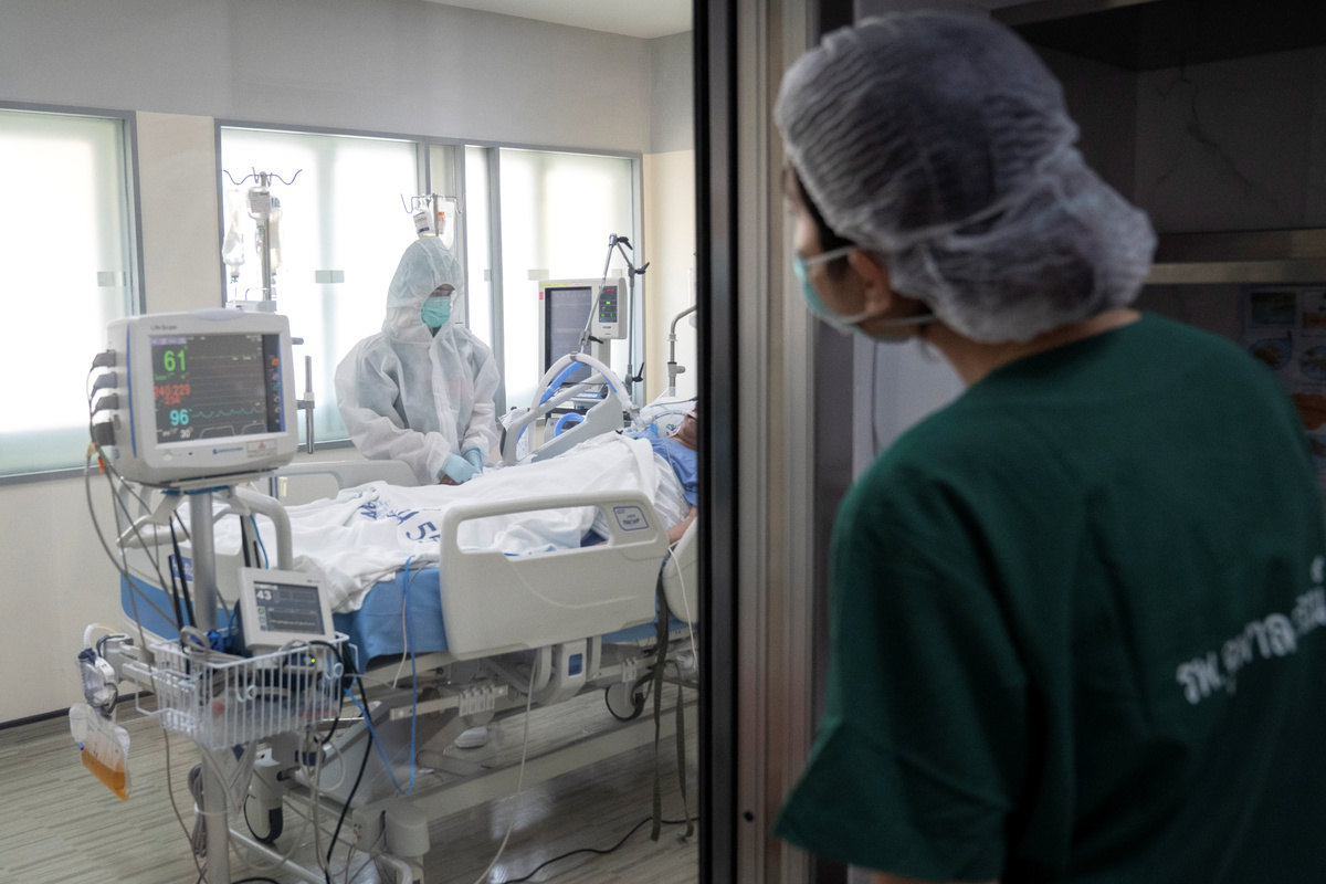 Nurses wearing face masks monitor COVID-19 patients in the ICU at the Emerging Infectious Disease Clinic in King Chulalongkorn Memorial Hospital in Bangkok, Thailand, April 22, 2020. REUTERS/Athit Perawongmetha