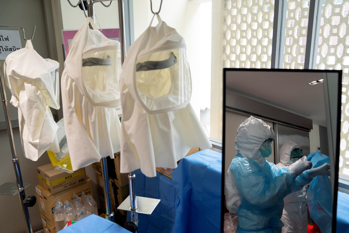 A nurse takes off her personal protective equipment (PPE) after treating a COVID-19 patient in the Emerging Infectious Disease Clinic intensive care unit at King Chulalongkorn Memorial Hospital in Bangkok, Thailand, April 22, 2020. REUTERS/Athit PerawongmethaNurses wearing personal protective equipment (PPE) attend to a COVID-19 patient in the Emerging Infectious Disease Clinic intensive care unit at King Chulalongkorn Memorial Hospital in Bangkok, Thailand, April 22, 2020. REUTERS/Athit PerawongmethaNurses wearing personal protective equipment (PPE) attend to a COVID-19 patient in the Emerging Infectious Disease Clinic intensive care unit at King Chulalongkorn Memorial Hospital in Bangkok, Thailand, April 22, 2020. REUTERS/Athit Perawongmetha