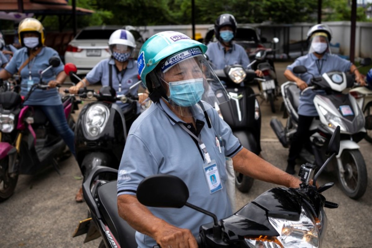 Surin, who has been a volunteer for 38 years and does her rounds by motorcycle, said she is also responsible for monitoring people who have returned from other provinces and need to be in quarantine for 14 days.