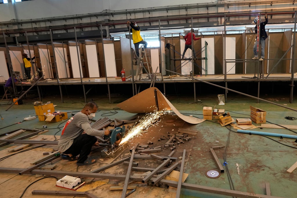 Workers rushed to finish the 1,800-bed hospital at Don Mueang International Airport, where beds made from cardboard box materials were laid out with mattresses and pillows. It is to be ready for patients in two weeks.
