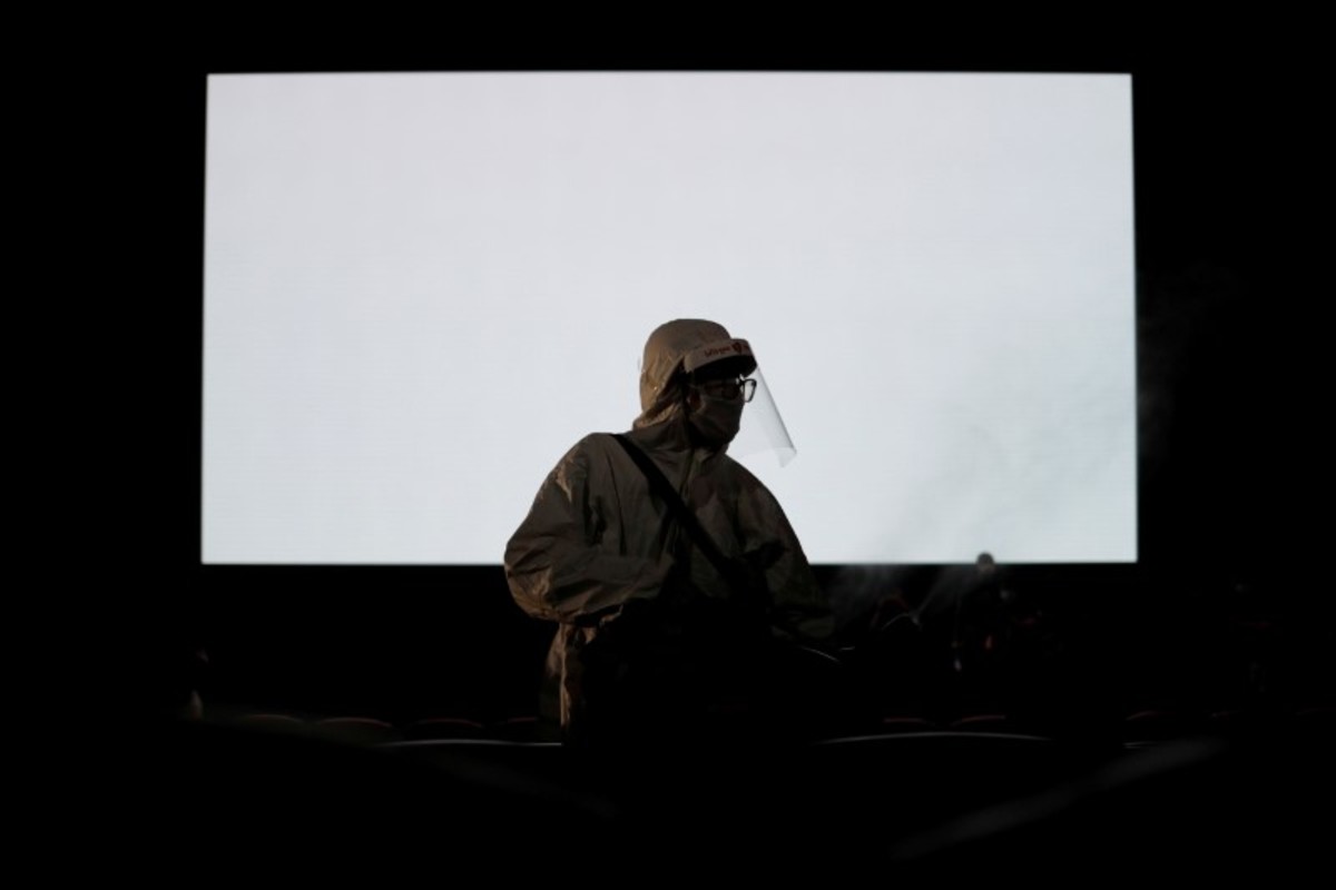 Staff with gloves and face shields performed temperature checks on everyone entering the theatre. After each screening, staff in full-body protective suits sprayed disinfectant along each row of seats.