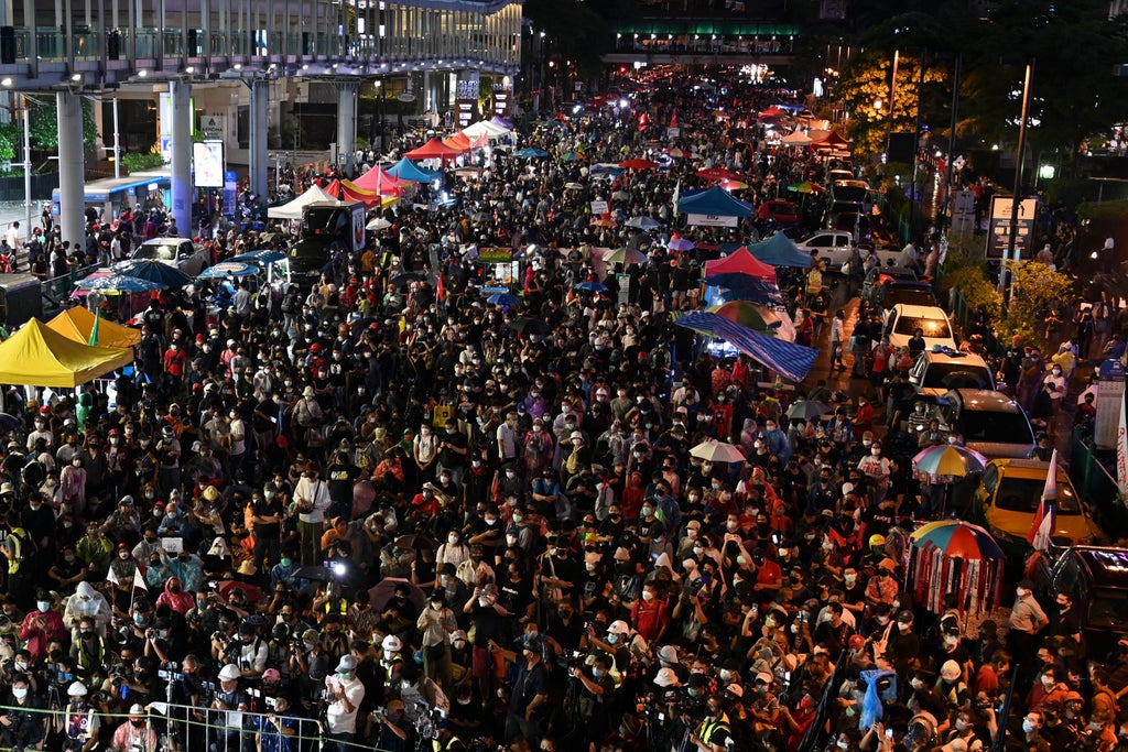 The rally organizers last year began holding street demonstrations with three core demands: the resignation of Prime Minister Prayuth Chan-ocha, who initially came to power as army commander by staging a coup in 2014; amendment of the constitution to make it more democratic; and reform of the monarchy to make it more accountable.