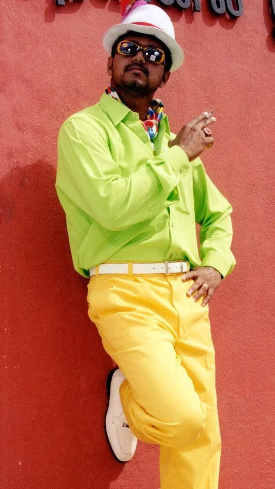 Vijay in a contrast-rich costume from \'Thirumalai\'.