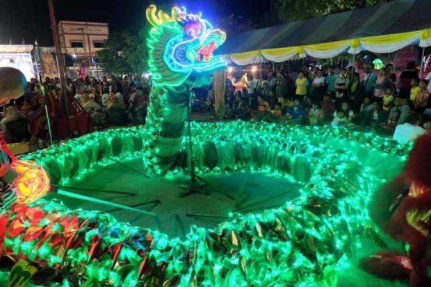 This will be followed by an acrobatic show by Jining Acrobatic Troupe from Shandong, China, which won the gold medal at the 6th National Golden Lion Competition, the largest competition of its kind in China. The troupe has performed on many international stages, with an idiosyncratic style inspired by both local Shandong culture and international standard performance. Other highlights will include an auspicious lion dance featuring up to 63 lions in 10 lucky colours representing the five elements, and a performance by the award-winning, 50m-long LED-lit dragon featuring more than 300 performers.