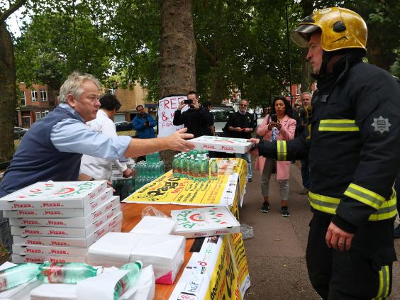 Teo Citino, the owner of nearby restaurant Il Pagliaccio, has set up a table with free pizza for the emergency services.