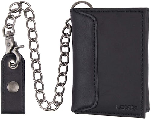 Thanks to its chain, this leather trifold wallet can attach to your belt loop so you can keep it in the pocket of your pants without fear of it slipping out. The interior is also lined with leather and features eight card slots along with two hidden pockets, a section for cash, and a transparent ID sleeve with a thumb cutout. The chain style is only available in one color (as pictured above) — but, you can also find this wallet in 14 options without a chain.