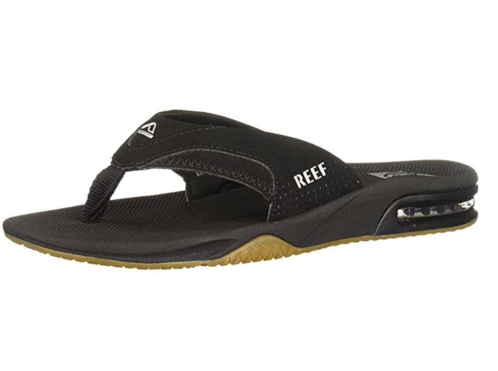 This Reef flip flop has over 23,000 five-star ratings on Amazon, making it a verifiable fan favorite. One reason people love it may be because it has defined arch support as well as wide straps with padding for a comfortable and secure fit. Great for wearing all day long, these flip flops have an EVA footbed and airbags in the heel, so your foot will be supported as you step down. They also have soles made from non-marking rubber with traction, and they even have built-in bottle openers on the bottom, which makes for a great party trick.