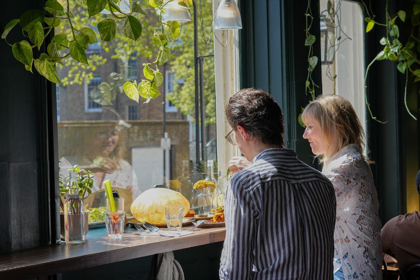 Nestled in a greenhouse complete with a bougainvillea canopy, sitting alone with a book at Petersham Nurseries feels like spending an afternoon in your own garden – but better. The seasonal dishes (think steelhead trout, nettle risotto and chargrilled oyster mushrooms) have earned the picturesque eatery a Michelin Green Star for sustainability. Make sure to leave plenty of space for pudding. Dogs are allowed.