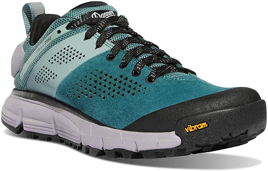 These stylish yet durable women's hiking sneakers are the perfect choice for wilderness adventures. They're built with a lightweight leather-textile blend that's tough without being bulky or cumbersome. Inside, they have cool mesh liners that are made from Gore-Tex, making them waterproof, as well as breathable and moisture-wicking. The OrthoLite footbeds offer top-notch cushioning, and they have EVA foam midsoles for shock absorption, too. The strong, grippy outsoles provide tread for safely navigating the trails, and they have reinforced heels for extra support. On top of that, they're available in six bold colors.