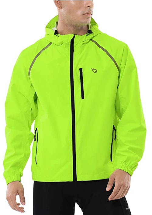 The BALEAF windbreaker has reflective stripes on the hood and body to help keep you visible to others in low-light conditions, and the 100% polyester jacket has waterproof laminating on the inside with a ventilation panel in the back to minimize sweating. There's also a full zipper and adjustable drawstrings at the hem and hood to protect you from wind and rain. Six pockets, including two inner pockets, provide plenty of storage for essentials. Finally, the windbreaker can be stuffed into its own back pocket for easy storage.