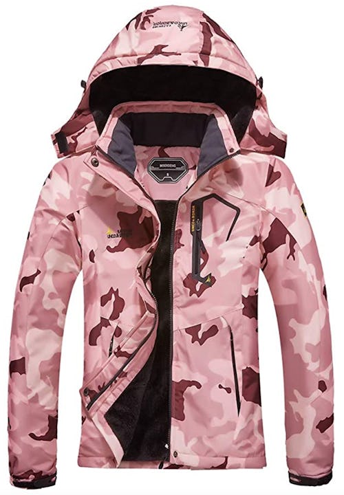 The women’s version of the MOERDENG windbreaker is made with polymer-coated, high-density polyester for unparalleled protection against wind and water. The plush, cotton-lined jacket has a full-length zipper and detachable hood with adjustable drawstrings. Valuables will stay secure in the zippered side pockets. (Note that a third zippered pocket over the left side of the chest is non-functional, but that's a small trade-off for a garment that effectively does its job.) Many reviewers raved that the relaxed fit is true to size, leaving just enough room to wear a sweater underneath on freezing days.