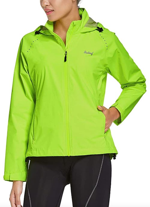 The women’s version of the BALEAF windbreaker offers similar features as the men’s version, but it’s available in more colors and comes in a slimmer fit. The jacket is made with 100% polyester in bright neon colors, which increases your visibility in low light conditions. There's a full zipper and adjustable drawstrings at the hem and hood to protect you from the cold. The inside seams are also sealed with special tape to keep water from seeping through. The back pocket, two zippered side pockets, and two inner pockets are all large enough to fit a 6.5-inch phone. If you work up a sweat, a mesh vent in the back allows for breathability and increased air flow.