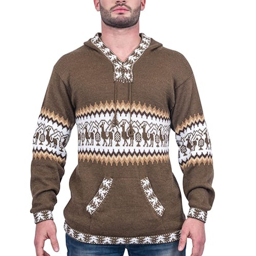 Made by Peruvian artisans, this hoodie sweater features geometric and llama-shaped designs on the sleeves and across the front. It’s made from a blend of 80% alpaca and 20% acrylic that’s “not itchy or scratchy; but rather soft and very comfortable,” according to an Amazon reviewer. The hoodie laces up in the front and has a roomy front pocket.