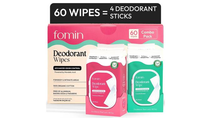 Smell fresh from day to night with Fomin Deodorant Wipes. Offering advanced odor control to your entire body, these 100% organic wipes are free of aluminum, baking soda and parabens.