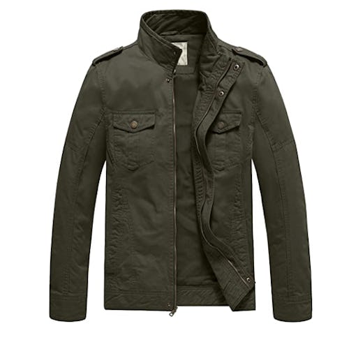 With a cotton twill shell and a smooth polyester lining, this field jacket is lightweight, breathable, and durable. It has a zipper and snap button closure, a stand collar, epaulet details, and adjustable cuffs and waist tabs for a tighter fit. There are two snap button breast pockets, two side pockets, and an inside pocket that one reviewer described as “neither too small nor too deep.” Plus, it’s machine washable.